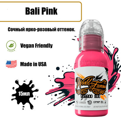 Bali Pink от World Famous Tattoo Ink — это яркий и насыщенный розовый оттенок, который идеально подходит для создания выразительных и свежих татуировок. Он обладает отличной укрывистостью и яркостью, что делает его идеальным для работы как на светлой, так и на темной коже. Этот пигмент часто используется для акцентов в ярких цветных композициях, таких как флора и фауна, а также для создания выразительных оттенков в стиле нео-традишнл или акварель. Bali Pink сохраняет свою насыщенность даже после заживления татуировки.