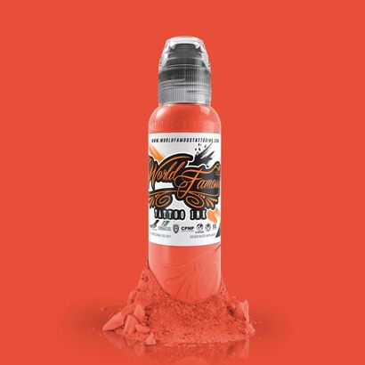 Краска для татуировок «Bora Bora Peach» от World Famous Tattoo Ink – это очень насыщенный оттенок оранжевого, к которому производитель добавил много красного оттенка. В результате получился яркий и жгучий цвет, который напоминает цвет спелых экзотических фруктов. Однородность краске обеспечивают мелкодисперсные пигменты, которые использует производитель.