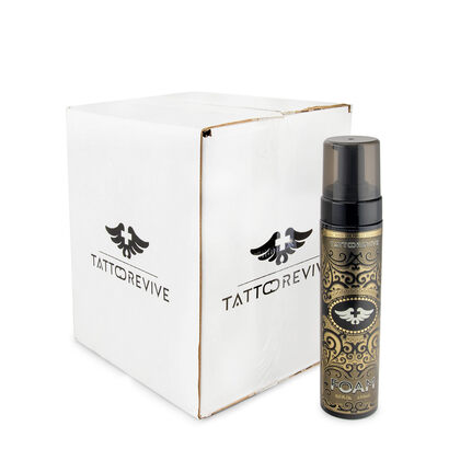 TATTOOREVIVE FOAM — готовая к применению профессиональная антибактериальная пена для очищения татуируемой кожи во время нанесения татуировки. Созданная на основе мягких природных компонентов и нейтральных пенообразователей без сульфатов, она деликатно очищает кожу без жжения и пересушивания.