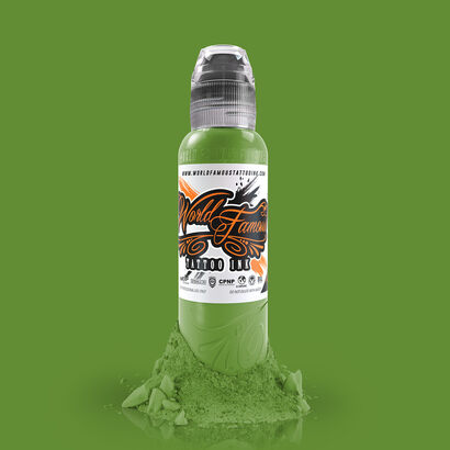 Краска для татуировок «Iceland Green» от World Famous Tattoo Ink – это сдержанный и немного приглушенный зеленый оттенок, как луга с весенней травой в Исландии. Оттенок очень плотный и однородный, поскольку производитель использует мелкодисперсные пигменты. Благодаря этой же хитрости краска легко вбивается под кожу, не провоцируя раздражения.