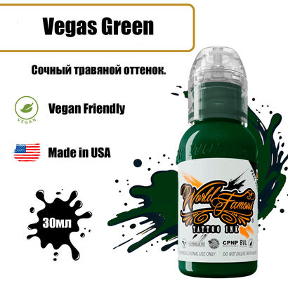 Пигмент Vegas Green — это насыщенный и яркий оттенок зелёного цвета от World Famous Tattoo Ink. Он отличается высокой насыщенностью и яркостью, что делает его идеальным для использования в татуировках, где требуется выразительный зеленый оттенок. Этот цвет может быть использован для создания эффектных деталей, а также для добавления яркости в композицию с другими цветами.